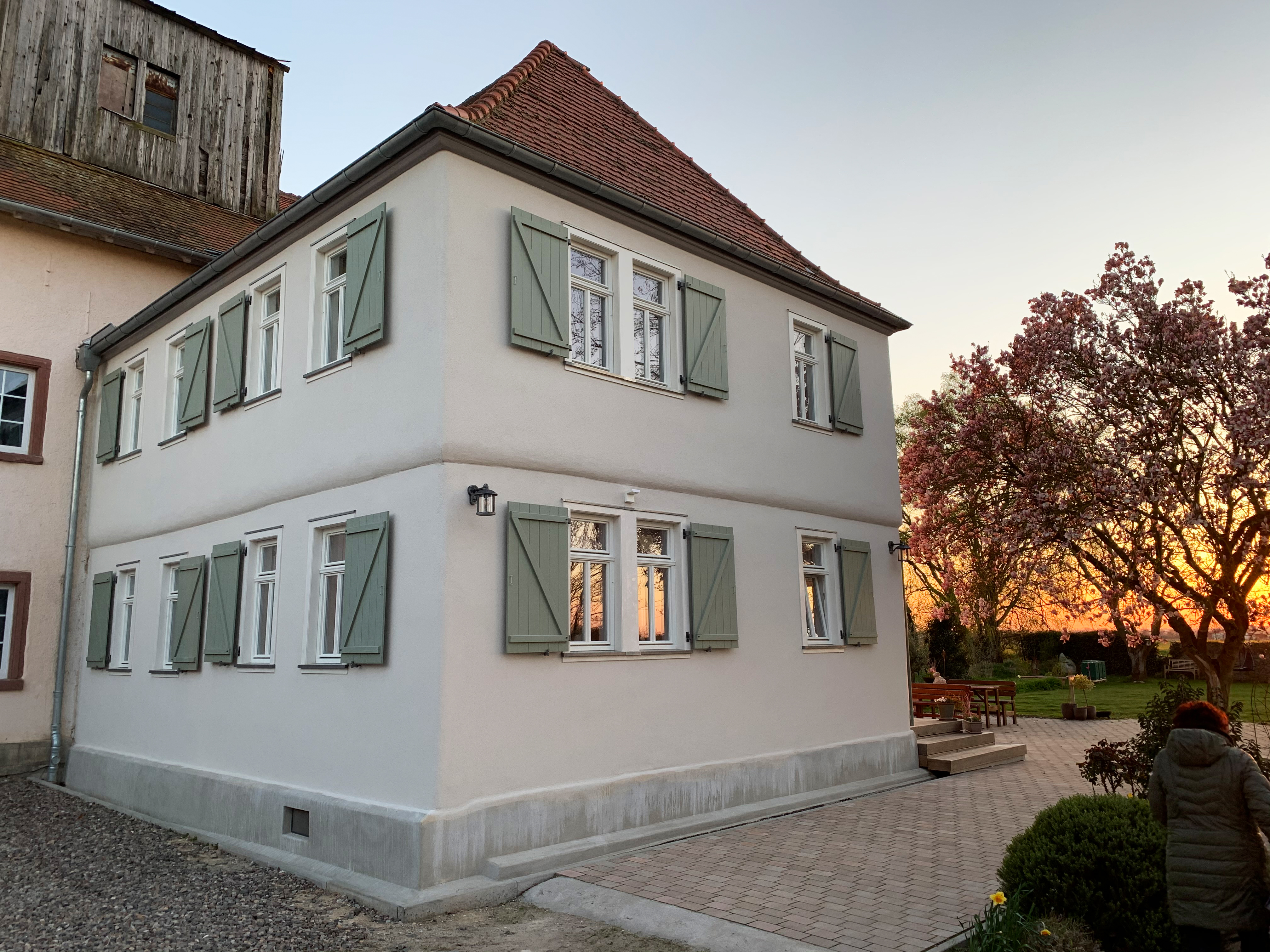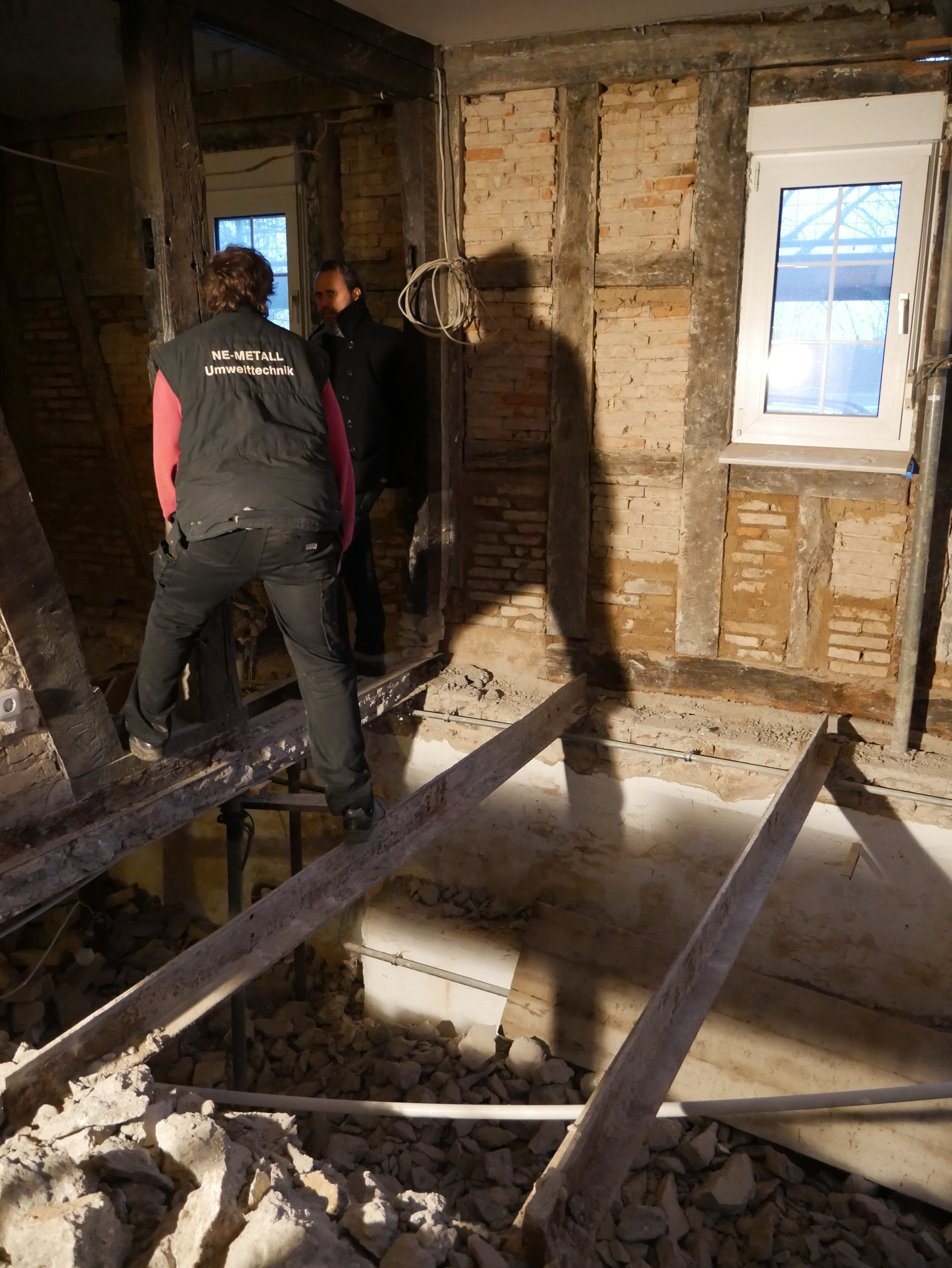 – Fachwerkhaus + Werkstattgebäude, zweigeschossig, als ersten Sanierungsschritt